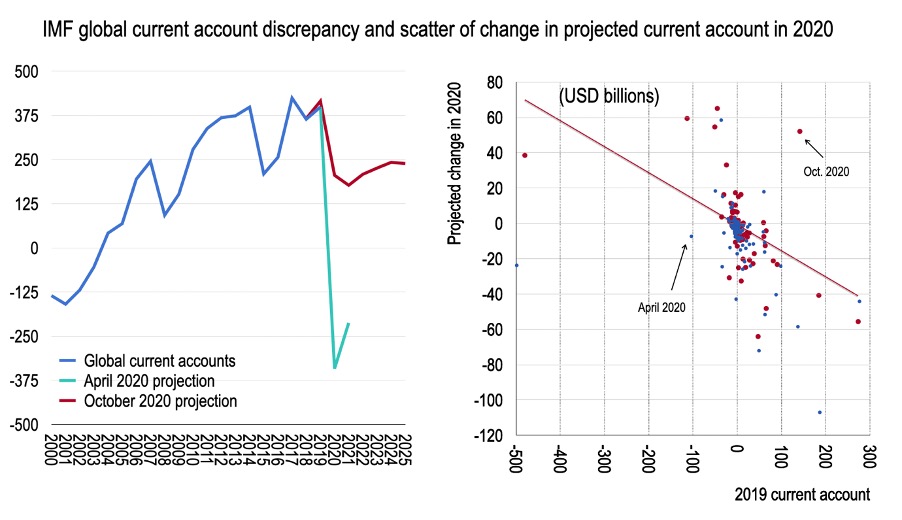 But first the good news. This blog noted in a belligerent style how the April WEO assumed the global current account moved from a surplus “discrepancy” of USD375BN in 2019 to deficit of nearly USD375BN. The discrepancy itself is a puzzle that we need not solve here. But that doesn’t mean it can be assumed away.